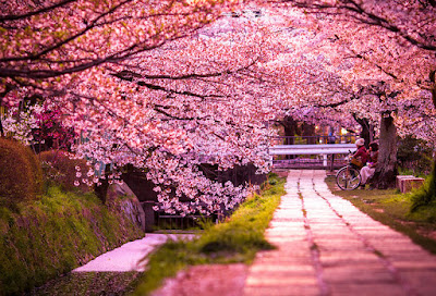 EM PARQUES JAPONESES, NA PRIMAVERA, ACONTECE A FLORAÇÃO DAS CEREJEIRAS, QUE NO JAPÃO EH CHAMADO DE "SAKURA". UM ESPETÁCULO NATURAL